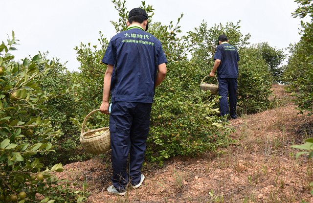 看着满园的硕果,采茶籽的小哥们那也是满脸的喜悦。迈着欢快步伐的他们,愉悦地穿梭于绿意盎然的油茶园中,寻找着熟的恰到好处的油茶籽。瞧!还没走多久,手上的篮子里已经快装满了···